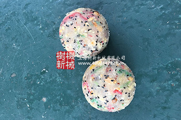 自动完成月饼馅料,或其他物料的压制成型,一次出5个球,球大小和数量可按要求定制。从下料,压型,脱模等工序,把月饼所需馅料,从散状压成圆球形,或其他形状,便于包面皮等后道工序的生产。