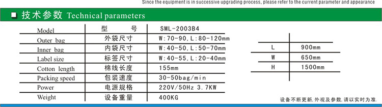 1.内袋+外袋+棉线+标签一次性完成,避免人手直接接触物料;