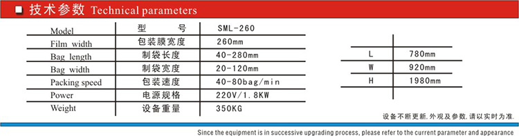 SML-260 立式包装机包装液体膏体(适应对象:液体,膏体类,如酱油,洗发水,果冻果汁等) |