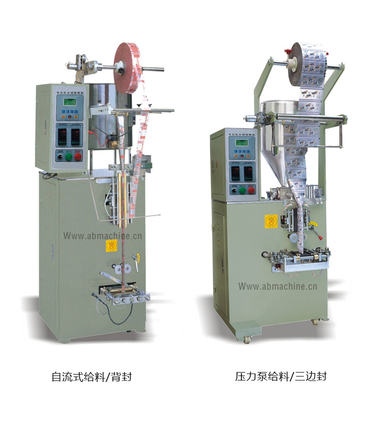 这是一款专门针对液体,膏体而设计的立式包装机(液体包装机,膏体包装机,果冻条包装机),根据不同的物料,可以选不同的下料方式:自流式下料适合流动性比较好的液体,如水,酱油等。 压力泵下料适合粘稠度较高的物料,如蜂蜜,油,酱料等。